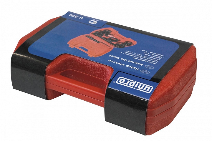 Набор клуппов для конической трубной резьбы с четырьмя быстросъемными головками: 1/2”, 3/4”, 1”, 1 1/4”.