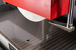 Плавное перемещение рабочего стола осуществляется по двойной V-образной направляющей. Направляющие скольжения по всем 3-м осям покрыты износостойким TF материалом и смазываются масляным насосом периодического действия с принудительной подачей масла. Движение стола вправо и влево приводится в движение лопастным насосом переменного рабочего объема и гидравлической системой закрытого типа. Малое тепловое расширение станины и колонны, плавное движение рабочего стола, низкий уровень шума и простота обслуживания, все это обеспечивает высокую жесткость и точность станка.