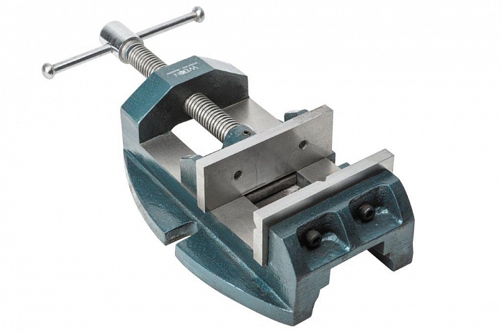 Тиски оснащены мощным прижимным винтом с трапециевидной резьбой, обеспечивающий высокую силу и точность фиксации заготовки. Основная базовая скоба тисков представляет собой единую, полностью монолитную, деталь, изготовленную с высоким качеством и точностью фрезерования, а также последующей шлифовкой всех поверхностей скольжения.